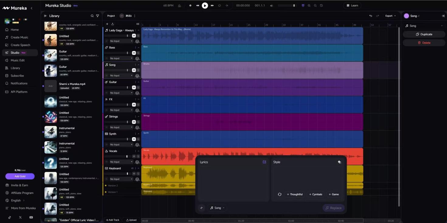 AI音乐方面,Mureka面向全球用户,兼顾大众与专业音乐人。大众用户可使用Easy Mode,1分钟内生成完整歌曲;专业音乐人可使用Studio工具,支持分轨编辑、编曲混音等。Mureka正加速向“AI版Spotify”演进,以免费流式播放和个性化推荐冲击传统付费订阅模式。