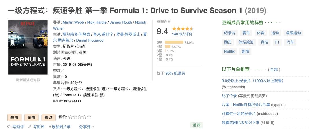 这不仅引发了大量硬核老车迷的愤怒,连车手本人也忍无可忍,维斯塔潘就曾公开抵制《疾速争胜》,并一度拒绝拍摄,而这种真实性的缺失,使得该系列“纪录片”评分一路走低。