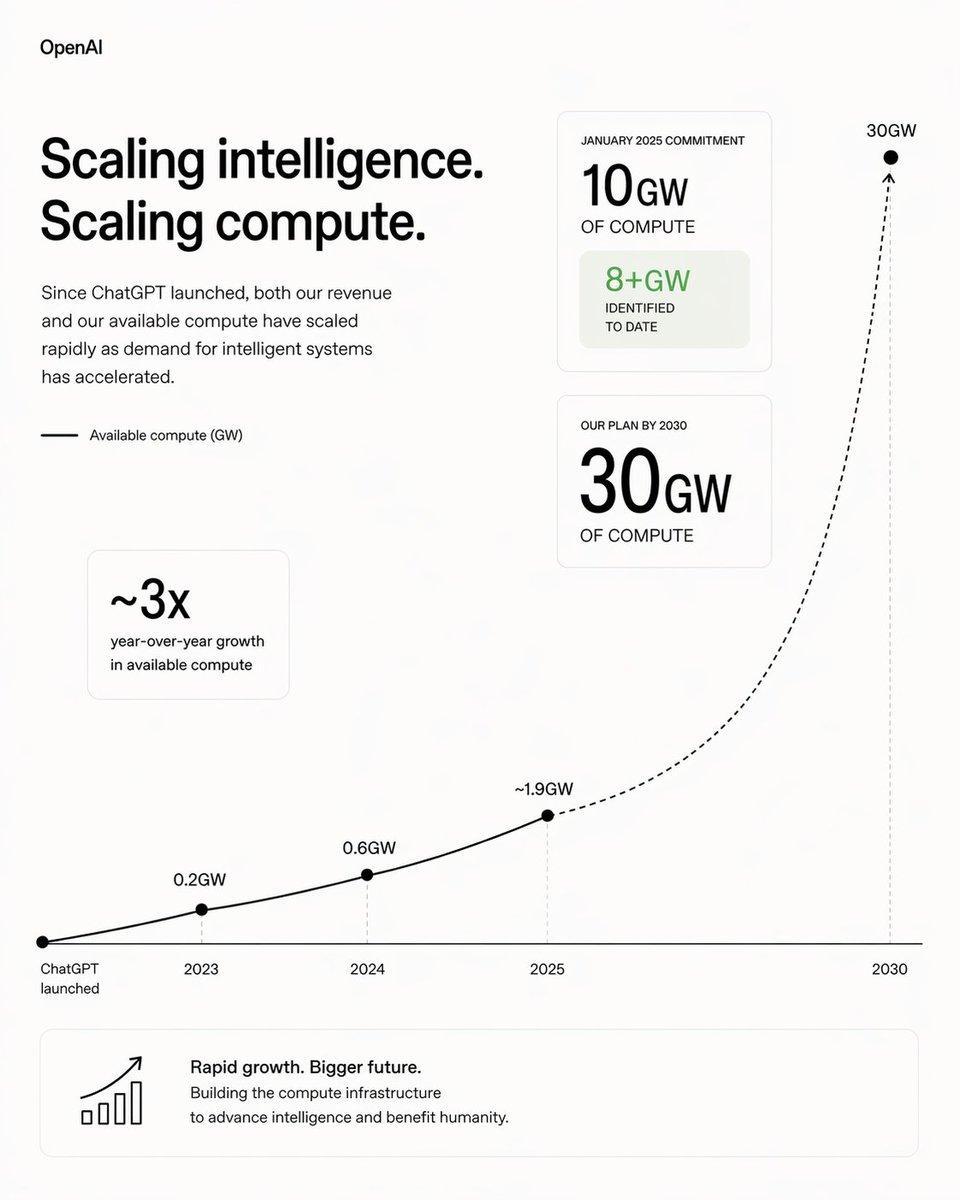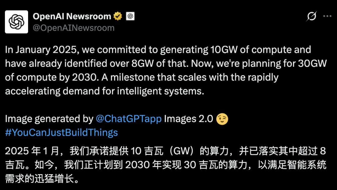 昨天,OpenAI官方再次提到了这个30GW的算力计划,称要以此满足AI需求的迅猛增长。