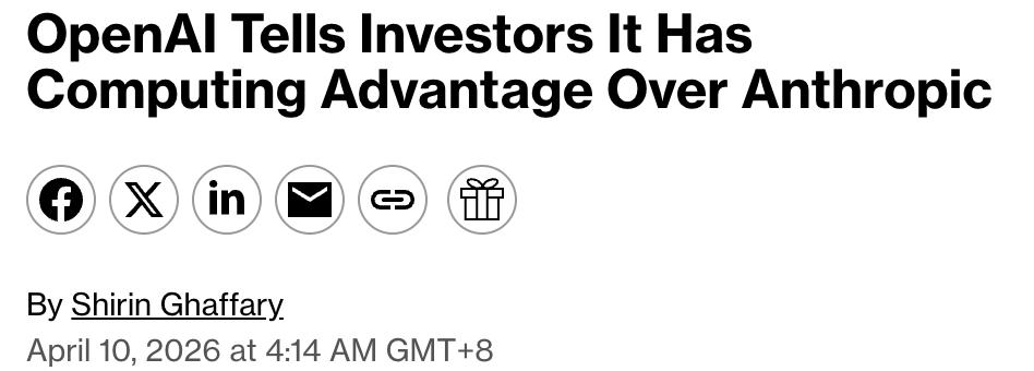 这是在竞争对手Anthropic发布Mythos之后,OpenAI在备忘录中向投资人解释自己仍具有结构性优势时写下的。