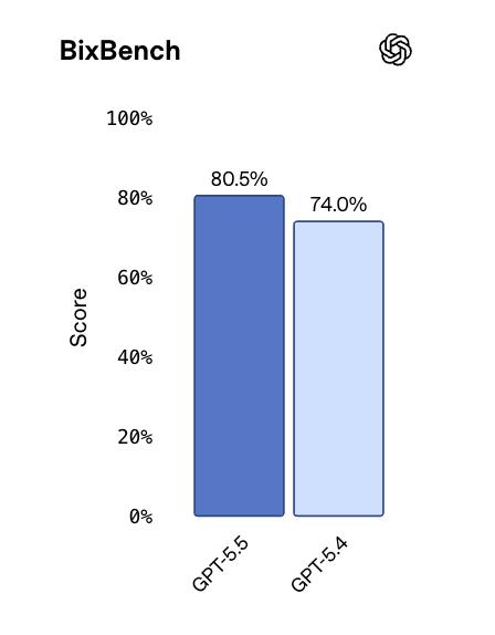 BixBench,基于真实生物信息学设计的评测,GPT-5.5在所有已公开分数的模型中排名第一,80.5%。
