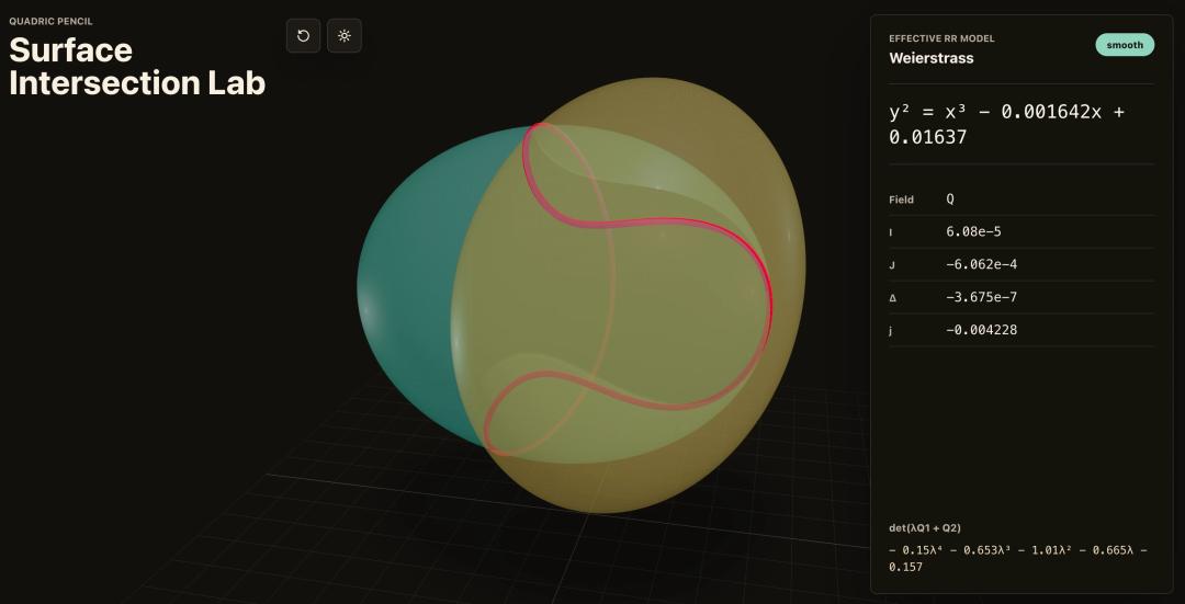波兹南·密茨凯维奇大学数学助教Bartosz Naskręcki在Codex中,仅用11分钟就从一个单一提示词构建了一个代数几何应用,可视化了二次曲面的交集,并将生成的曲线转换为Weierstrass模型。