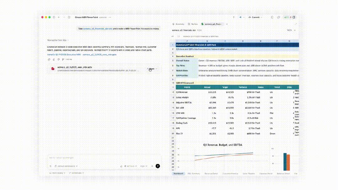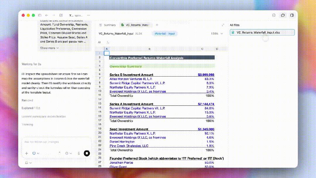 Codex还可以生成更高质量的电子表格、PPT和文档,如下是一个财务建模的demo。
