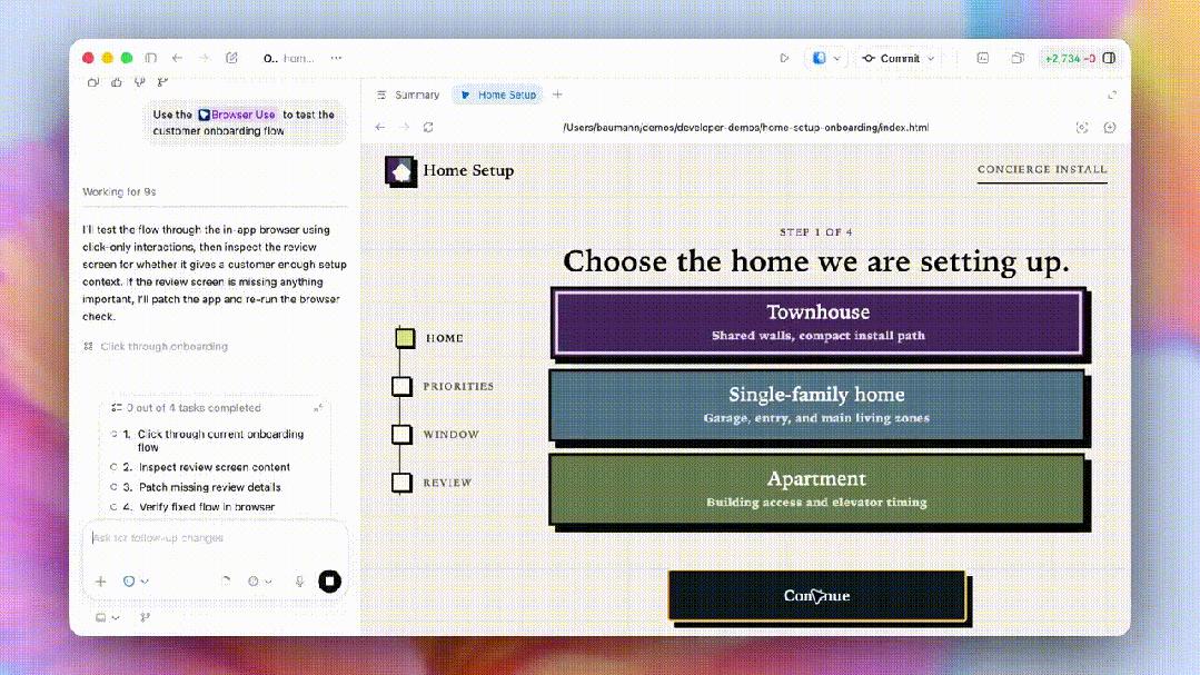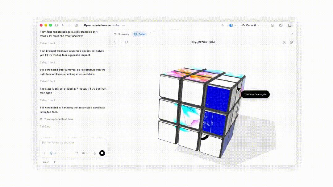 如今,在Codex中,通过GPT-5.5可与Web应用直接交互,测试流程、点击页面、截取屏幕,并根据所见内容不断迭代,直到完成任务。