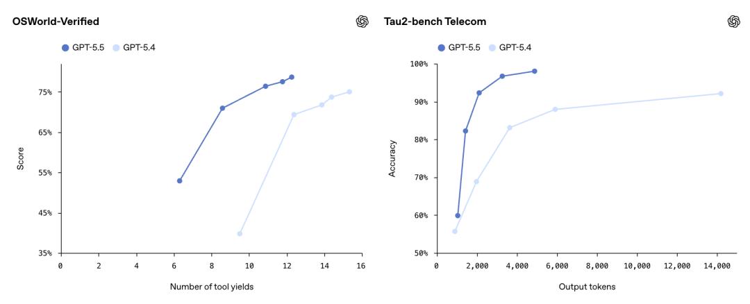 OpenAI给出的解释是token效率提升。同样的Codex任务,GPT-5.5用的token比GPT-5.4明显更少。
