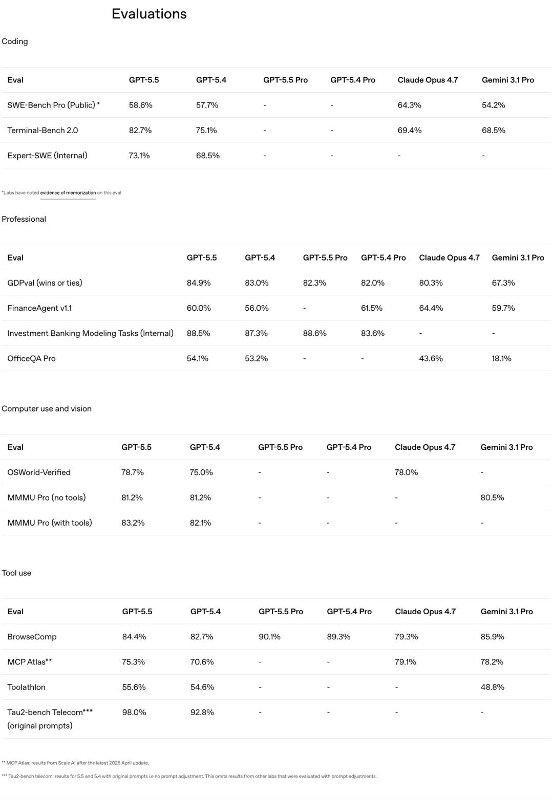 对比一下Opus 4.7,输入5美元,输出25美元。GPT-5.5的输入价格和Opus 4.7持平,但输出贵了20%。