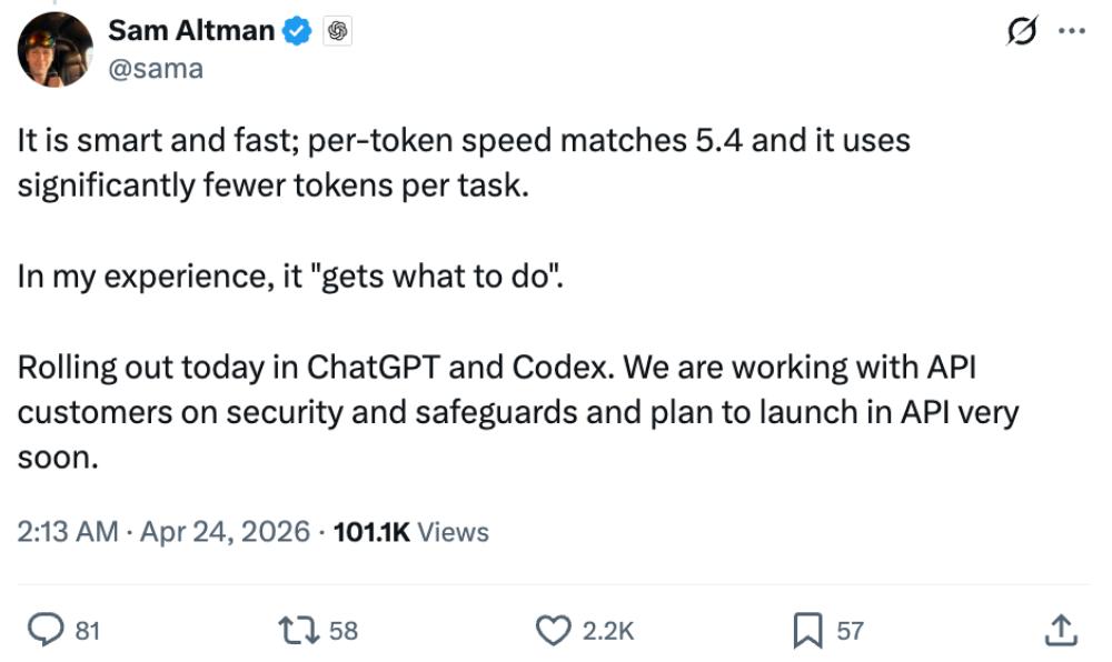 ▲OpenAI官宣推文(指路:https://x.com/OpenAI/status/2047376561205325845)