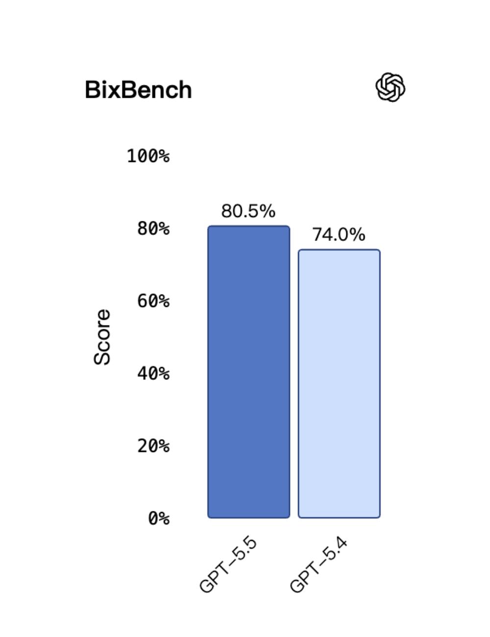 同样,在围绕真实世界生物信息学与数据分析设计的基准测试BixBench上,GPT‑5.5在已公布分数的模型中领先。
