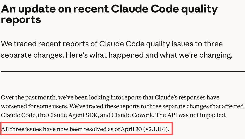 GPT-5.5发布之际,正值Claude Code最近性能变差屡遭投诉。或许是感受到来自GPT-5.5的压力,Anthropic今日发长文宣布已修复降智问题,并自今日起重置所有订阅用户的使用限制。