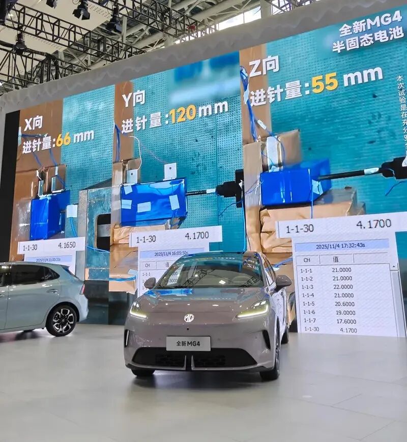 正如上文所说的,上汽集团旗下的名爵MG率先打破了局面。2025年底,搭载清陶能源半固态电池的MG4“安芯版”正式开启交付,成为全球首款面向大众市场的量产半固态电池搭载车型。