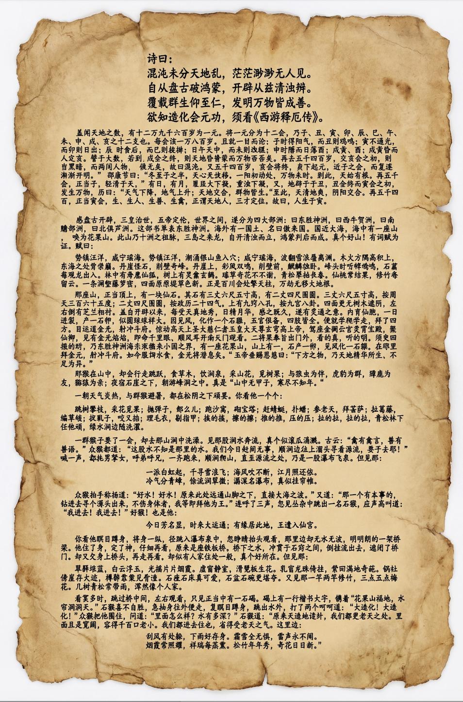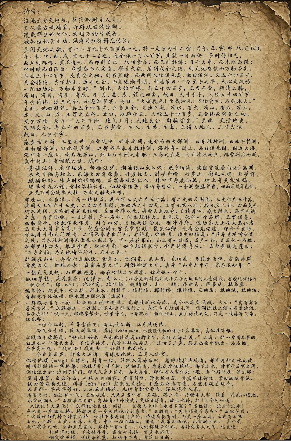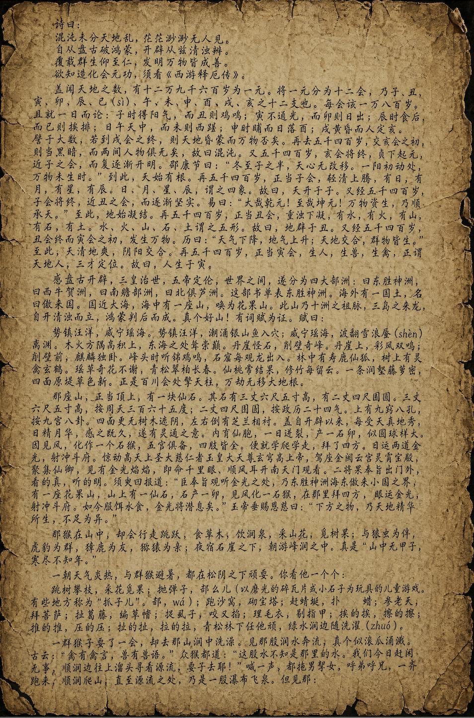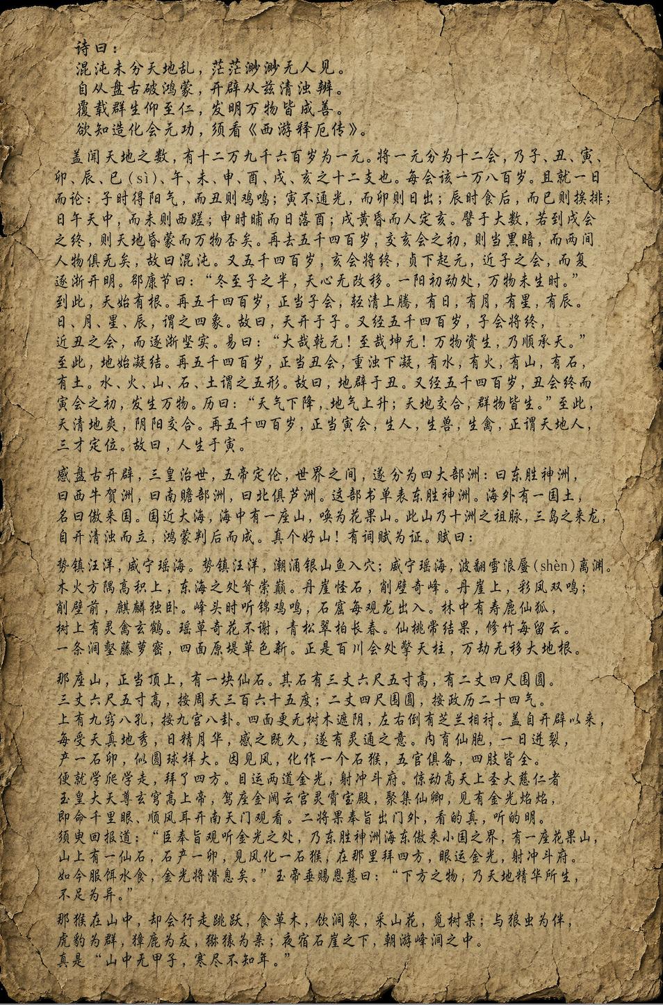 首先是从开篇到孙悟空刚出世,大概 1300 字。