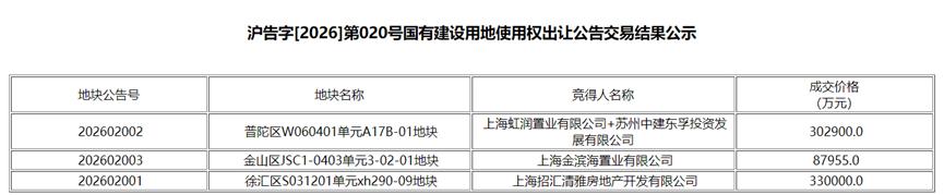 除了徐汇区长桥街道地块外,招商蛇口还联手中国建筑第八工程局,以30.29亿元底价拿下普陀区石泉社区地块;而金山新城板块地块则最终由上海金滨海置业以底价8.79亿元摘得。