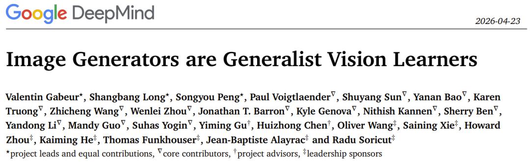 就在人们还在惊叹于 AI 图像生成的卓越能力时,谷歌 DeepMind 却放出了一篇重量级论文《Image Generators are Generalist Vision Learners》,其中系统性地证明了之前许多人已经有过的直觉:图像生成器就是强大的通用视觉学习器。