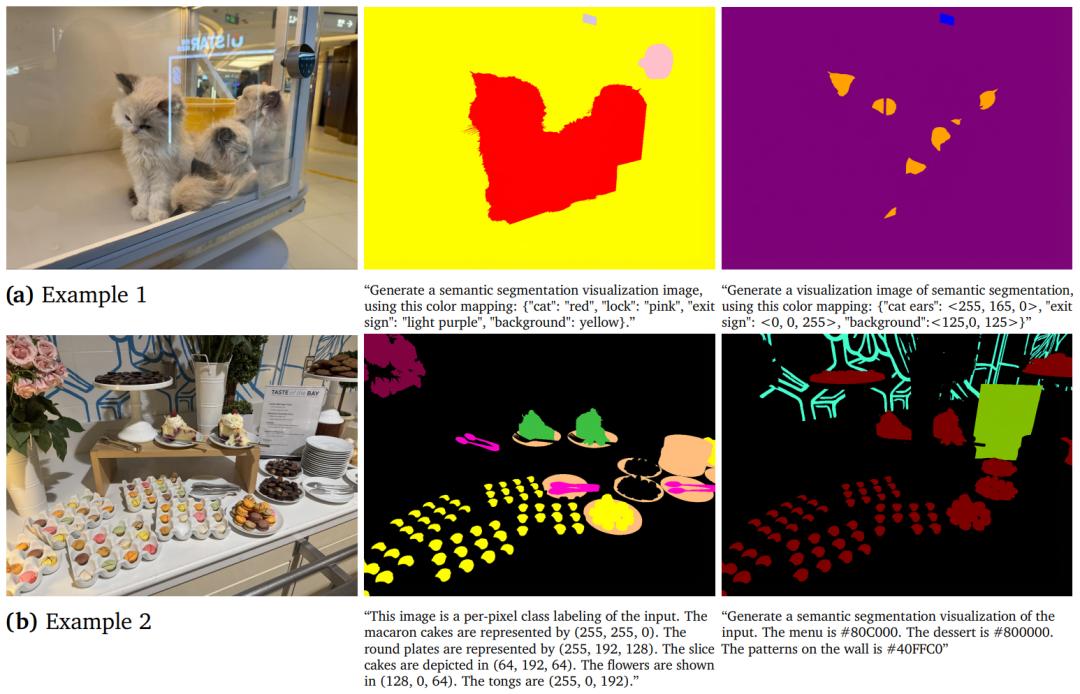 为了教导模型听懂指令,并直接「画」出视觉任务的结果,Vision Banana 实行图像化输出解码。例如在语义分割中,提示词会规定「把滑板画成纯黄色 <255, 255, 0>」,模型就会直接生成一张带有颜色掩码的 RGB 图片,随后只需将对应颜色的像素提取出来,就能完美还原出分割结果。