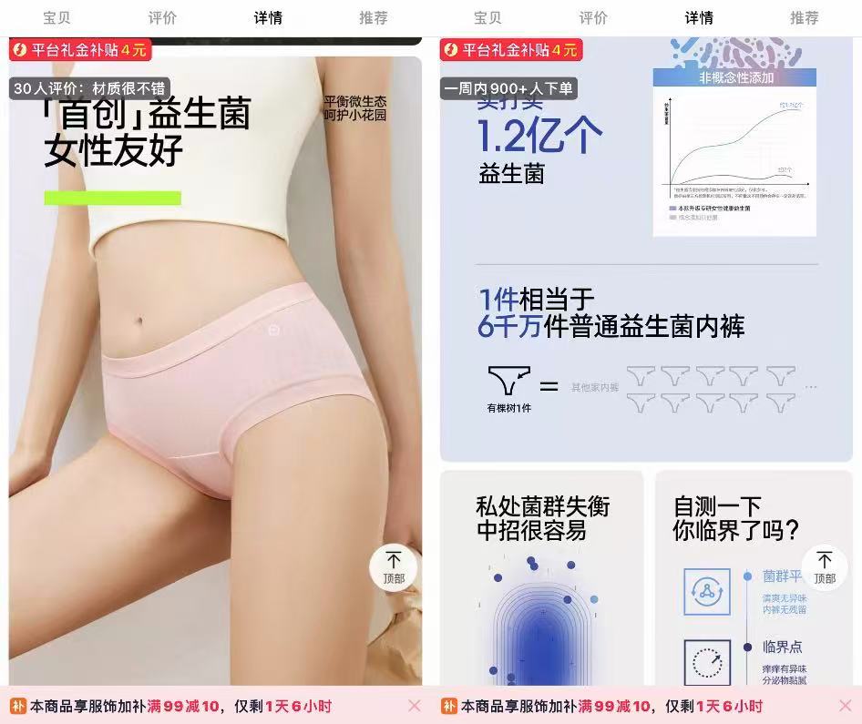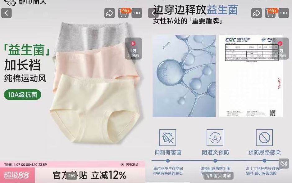 这些密集出现在社交媒体上的话术,宣传的都是同一类型产品——益生菌内裤。
