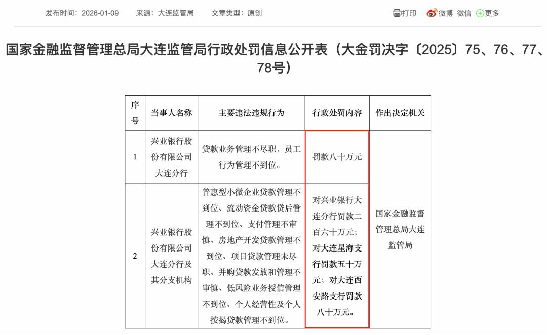 同一天,大连分行及下辖两家支行更是被合计罚款470万元,包括: