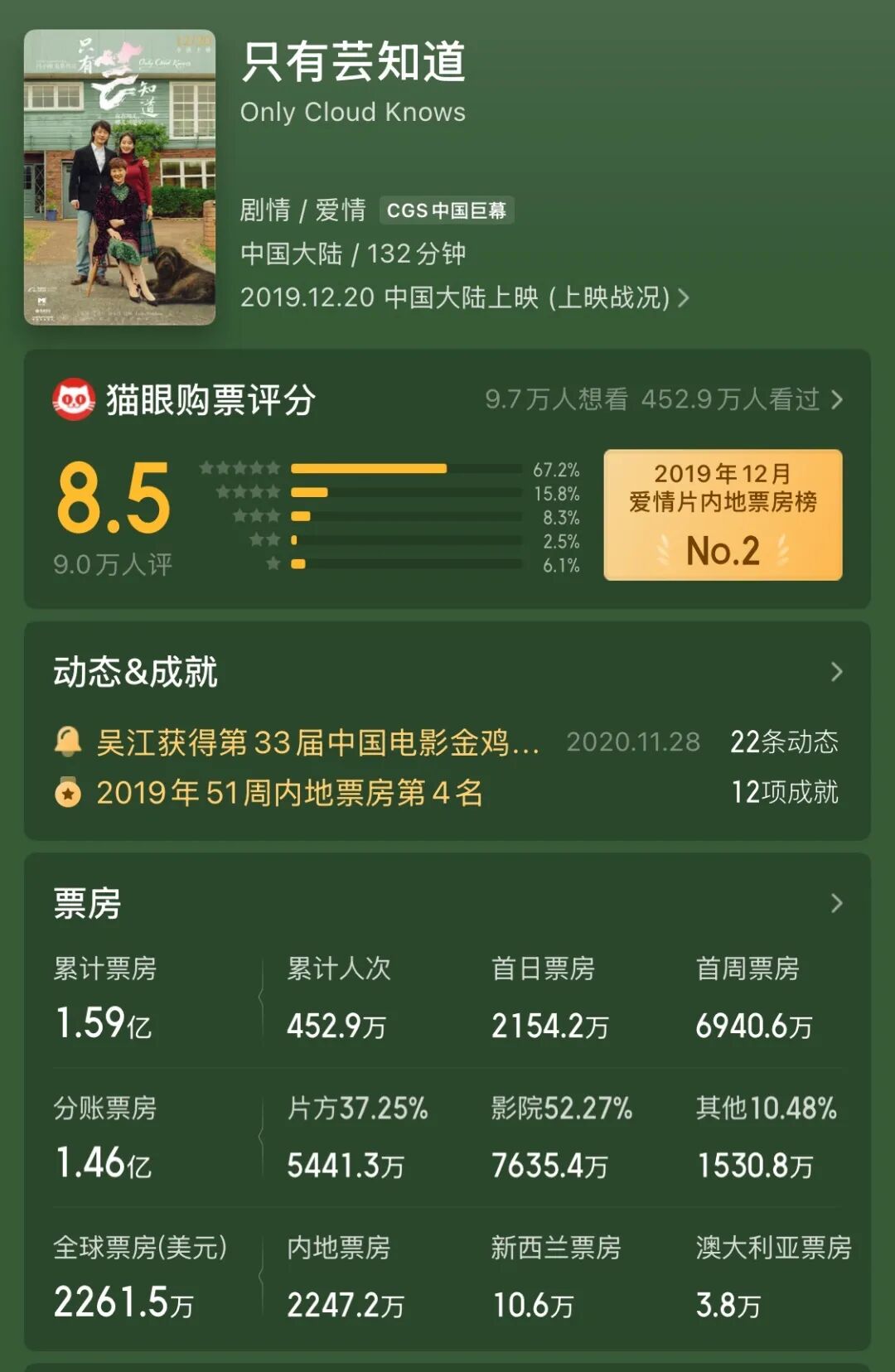 《如果声音不记得》:2020年,成本约3000万,票房3.3亿,盈利