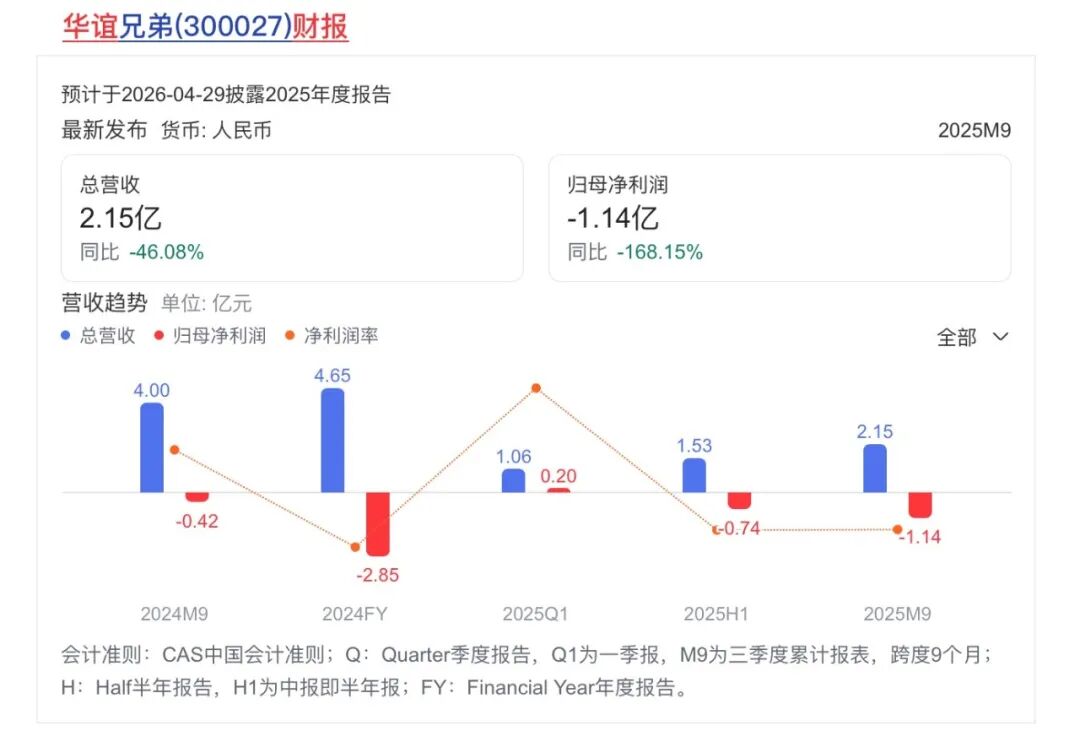 为维持运转,华谊不断举债,截至2025年三季度末,负债超7亿元、净资产为负2.45亿元,已严重资不抵债,漫长回款周期让其陷入“借新还旧”的恶性循环。