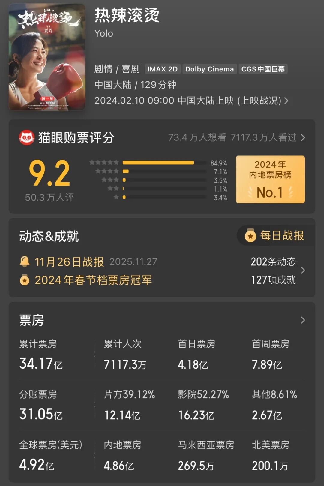 还可提供另一个样本的是儒意影业。2023年12月,儒意成为万达电影的第一大股东后,做的第一件事情,就是将儒意自研的IP数据评估系统接入万达院线的排片系统,实现“数据指导排片”——例如《热辣滚烫》(2024年)的排片率从首日的24%根据实时数据调至次日的32%。这种“非人治”的方式,让儒意电影相对摆脱了对人的高风险依赖。
