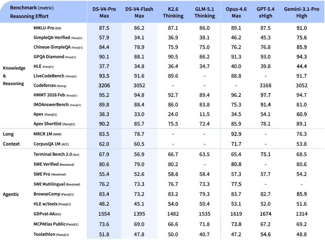 V4这次做的是另一件事:它用万亿参数级的模型,把基准能力、百万级上下文和Agent能力同时打包、拆开、开源,向行业宣告——成本这一刀接下来砍向推理端。