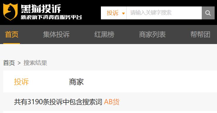 在黑猫投诉平台上,关于“AB货”的投诉,更是多达3190条。