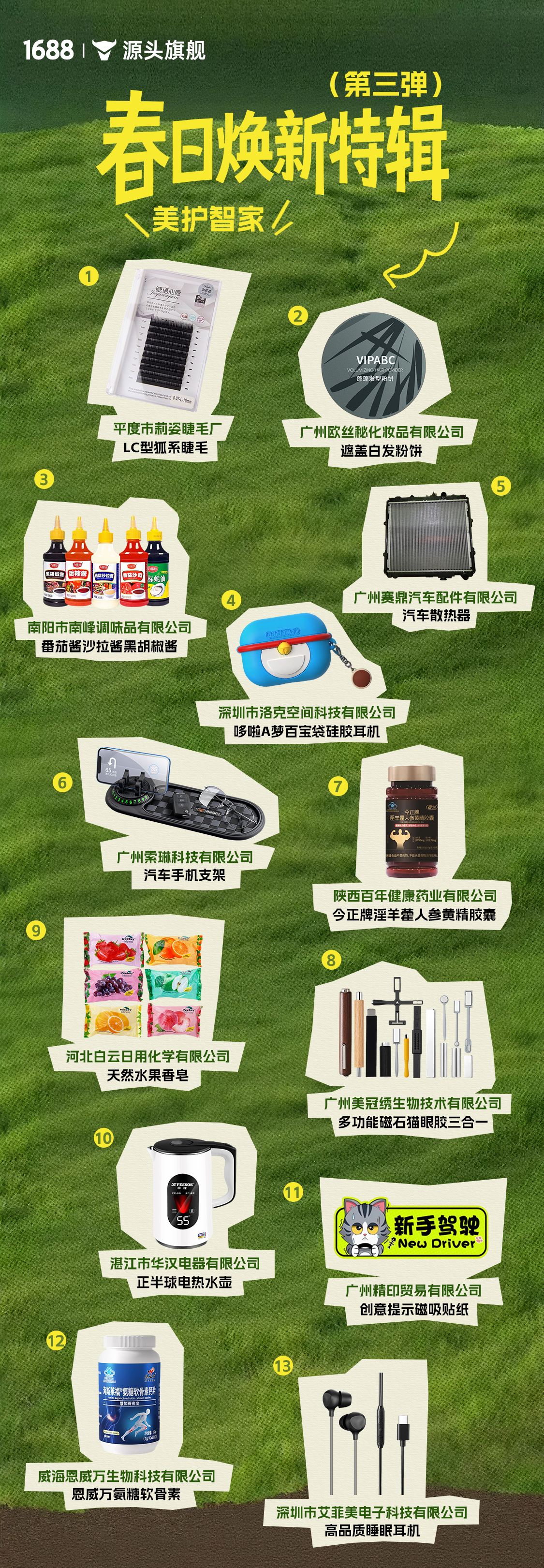 五一劳动节不仅是消费黄金周,更是春夏换季、出游露营、家居焕新的需求爆发点,本期「春日好物特辑」聚焦美护智家、服饰风尚、文创运动、工业制造、大美家居五大赛道,精选1688源头产业带头部供应链——从高质价比到极致快反能力,帮你提前锁定节日流量与夏季备货节奏。无论你是渠道商还是品牌方,五月生意从这儿加速!