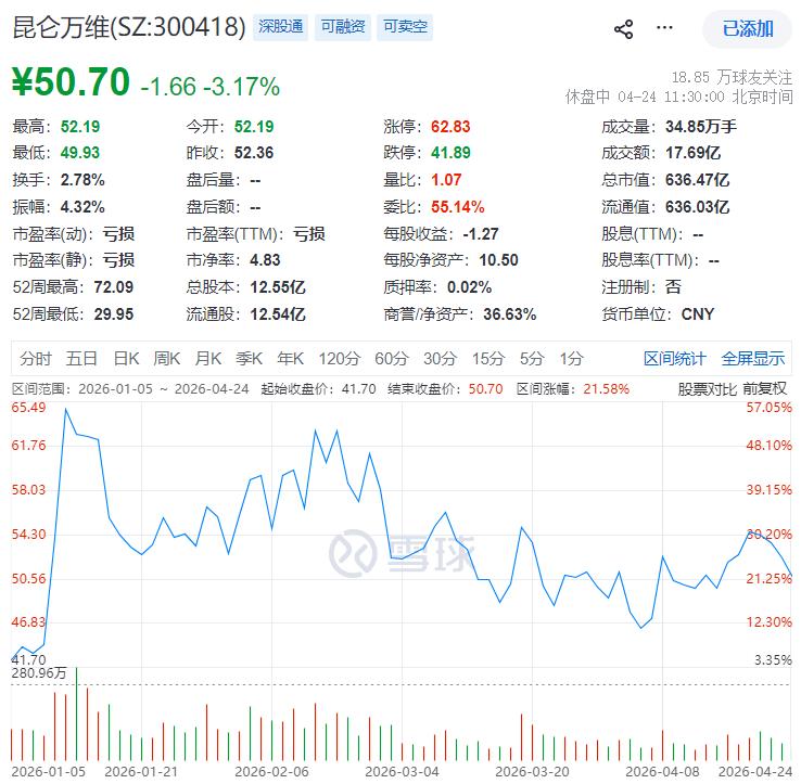 截至发稿前,昆仑万维总市值约636.47亿,年初至今股价涨幅超20%,市场对其AI短剧出海的增长潜力,仍保持着较高期待。