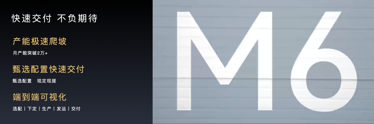 问界M6做到了发布即交付,依托快速爬坡的产能,问界M6臻选配置已陆续发往全国门店,实现现定现提,高效满足用户“五一”假期出行需求。
