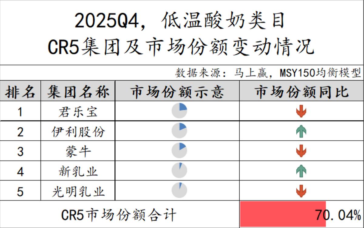 马上赢品牌CT数据显示,2025年第四季度,光明乳业低温纯牛奶类目市场份额排名第二,仅次于君乐宝,而且市场份额呈上升态势。