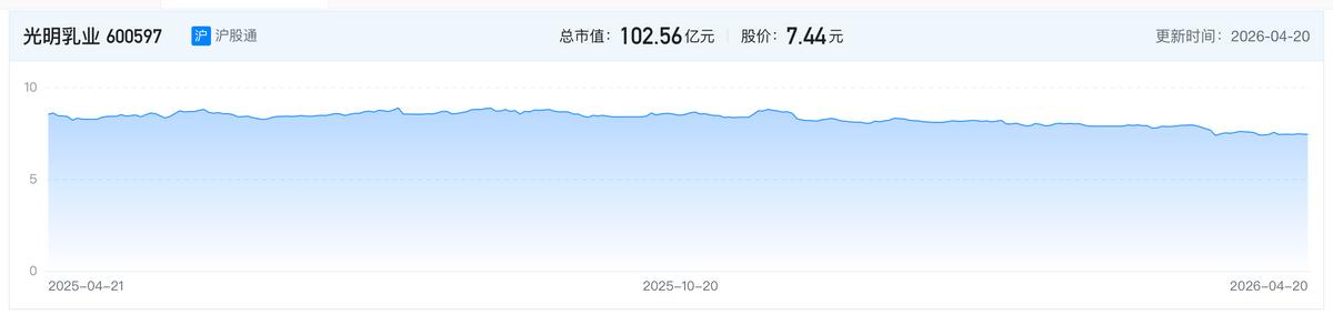 天眼查APP显示,截至2025年11月14日,光明乳业市值为102.56亿元,与新乳业之间的差距扩大到了54.09亿元。