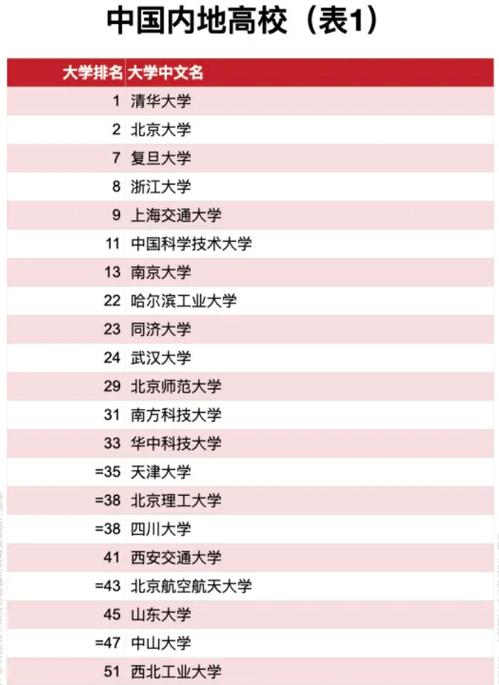 具体来看,清华大学连续第八年蝉联榜首,北京大学保持第二名,复旦大学和浙江大学分别保持第七和第八名,上海交通大学上升一位排在第九名。
