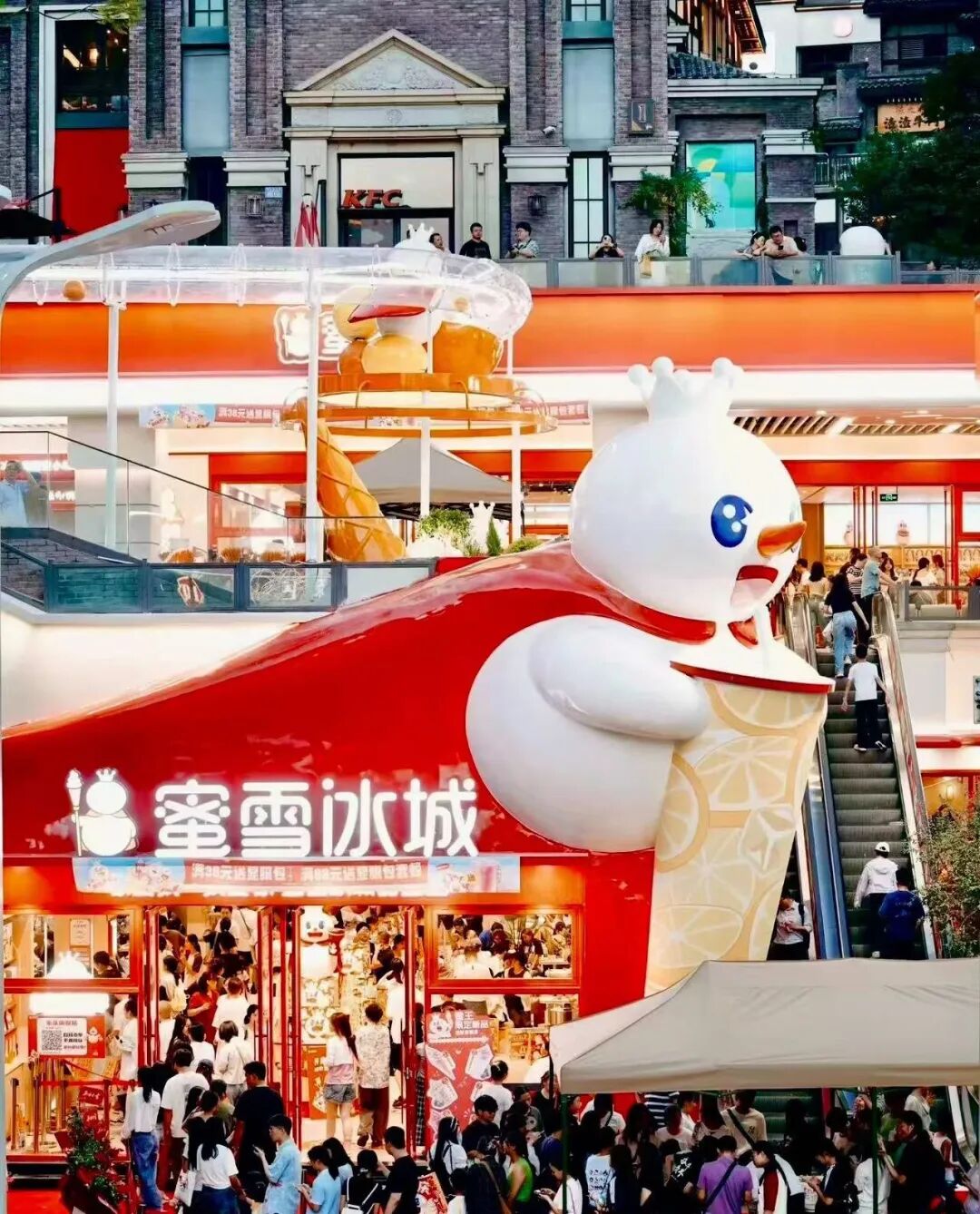 2.5元一包的干脆面包丁,为茶颜悦色贡献了近亿元的销售额,茉气脆脆条、玉米粒总动员、烤椰脆脆……正是这些看似不起眼的“奶茶边角料”,却成了茶颜悦色的“第二增长曲线”。自2025年起,蜜雪冰城在全国范围内开出了大量“旗舰店”,所售的产品从从1.5元的雪王积木盲袋到89元徽章礼盒,还有1元辣条、8.9元袋泡茶等各种零食。凭借着雪王强大的IP影响力,“蜜雪冰城旗舰店”吸金能力惊人,其中重庆1200㎡的“雪王城堡”国庆八天营业额突破350万元,最夸张的是郑州总部旗舰店,去年8月份卖出了1500万……