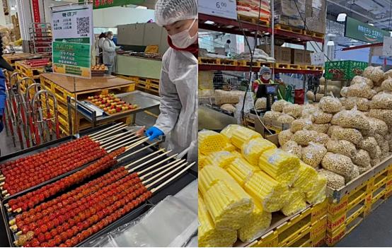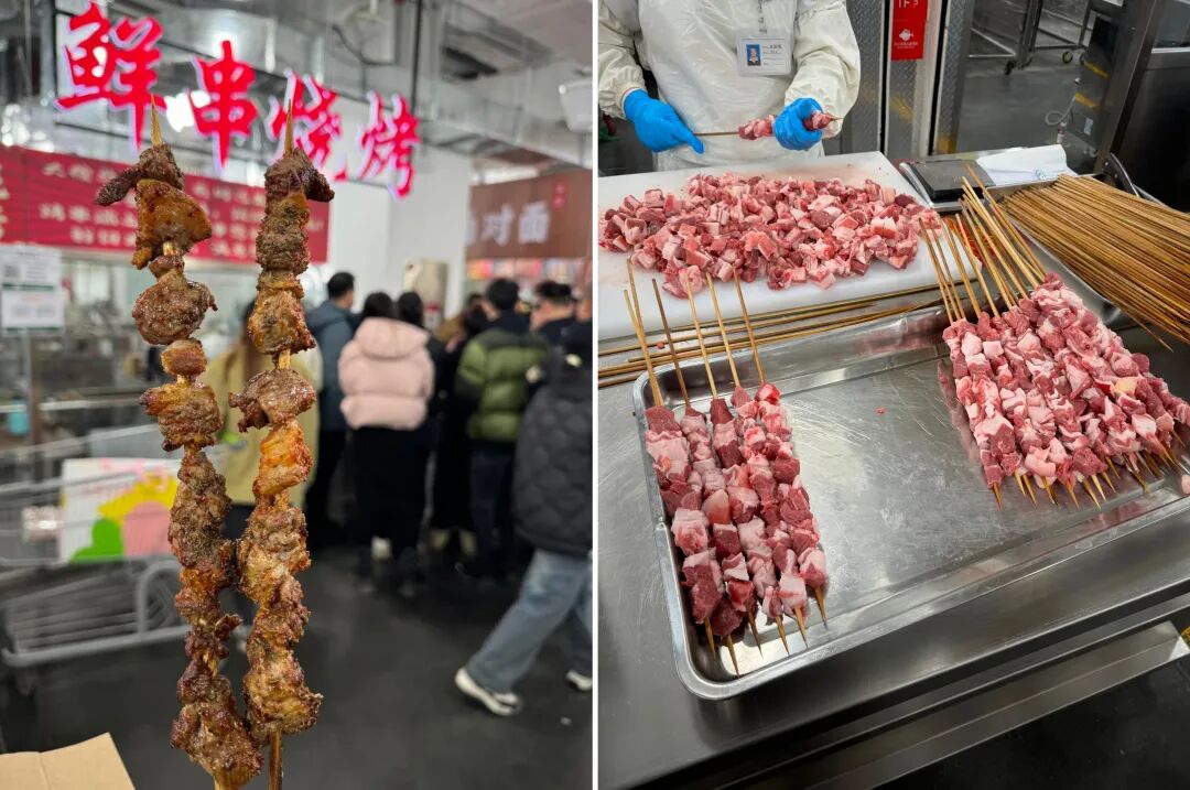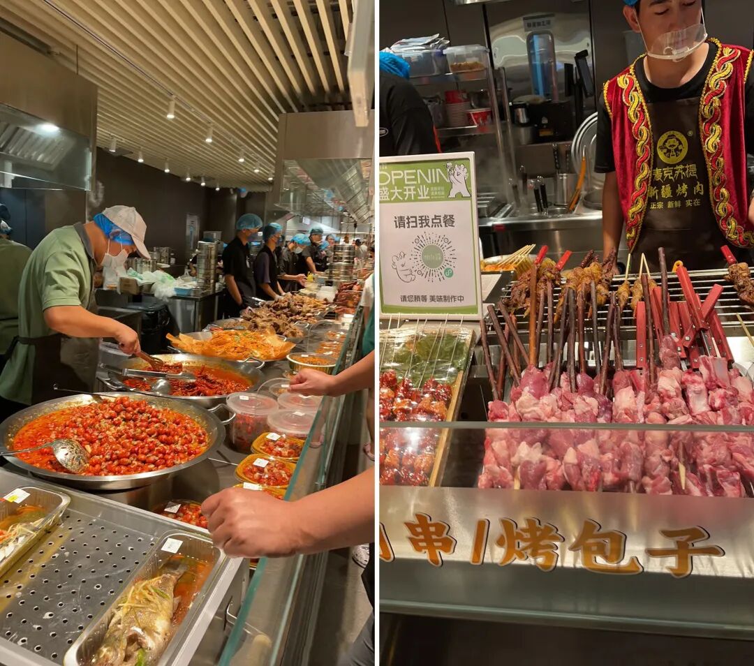 “现烤羊肉串、现制糖葫芦、现包的饺子、现做的拉面、现磨的咖啡、现烤的面包……”,“餐超”通过“中央厨房前置+档口现场制作”的模式,让“新鲜”与“安全”看得见、摸得着,所见即所得。