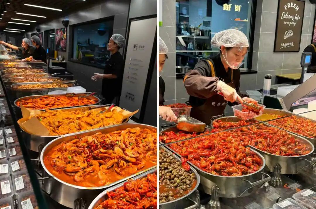 2)餐饮品类丰富。如今“三岛一街”(即热卤&凉菜岛,热食&炸烤岛,面食&汤粥岛,外加小吃一条街)已经成为“餐超”的标配,另外随着超市竞争的加剧,在品类的差异化上,“餐超”还在不断加码:雅斯食堂推出了类似大米先生的“小碗菜;’567’鲜生的海鲜不但现捞现卖,还提供免费加工;“商超天花板”胖东来更是隐藏的“餐饮大佬”,开出的餐厅包括烘焙店、麻辣香锅、铁板烧、湘菜馆、麻辣烫和面馆。