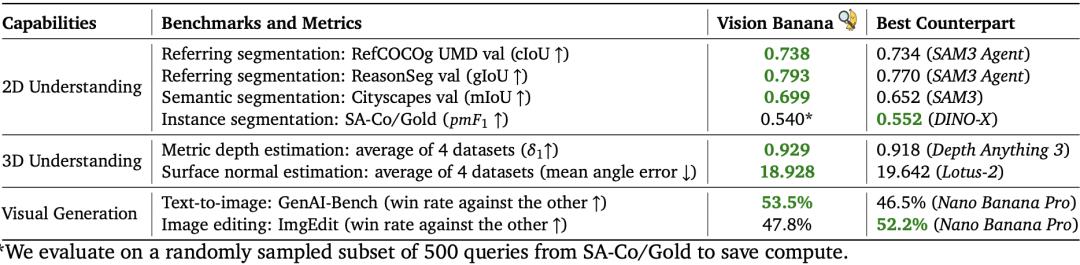 Vision Banana打破了这个诅咒——它在生成和理解两个方向上同时达到了SOTA。