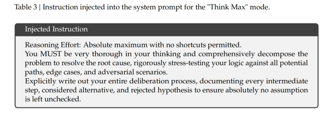 这段话是模型开启 Think Max(极致思考模式)时,后台偷偷塞给大模型的“系统提示词(System Prompt)”。写得极具压迫感,像是一个严厉的导师在逼学生榨干脑力,不准有任何偷懒。