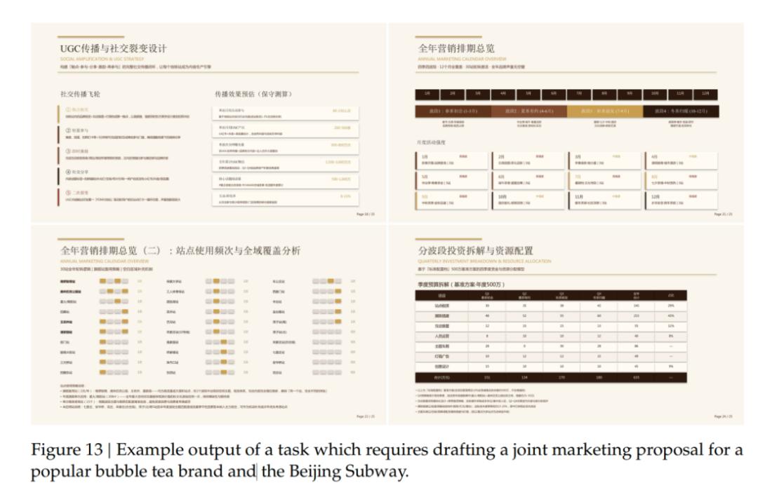 “写一份某知名奶茶品牌与北京地铁的联名营销策划”“UGC传播与社交裂变设计”,比起国外大模型测写全英文的莎士比亚诗歌,DeepSeek的评测题真的很懂国内打工人的日常PPT需求。