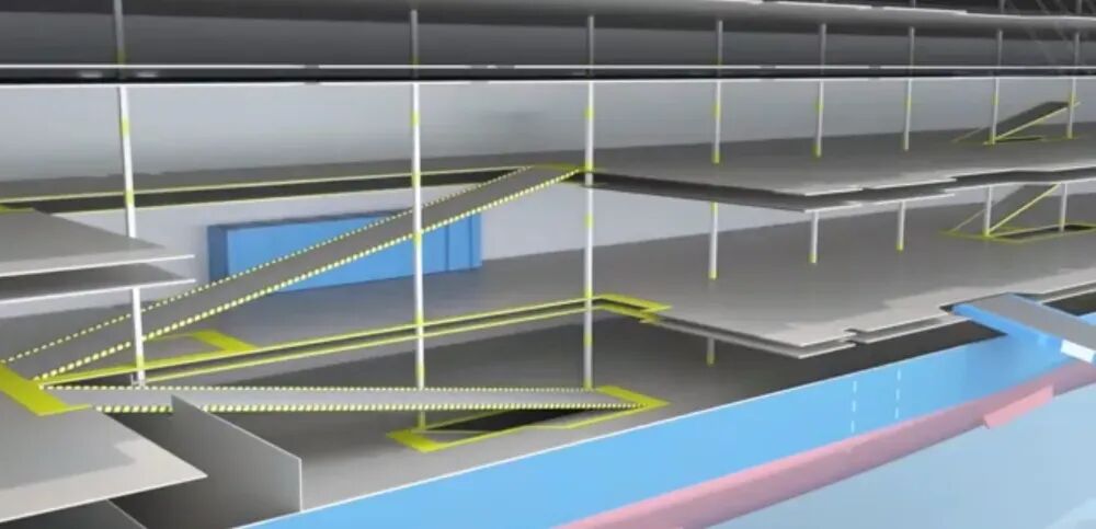 滚装船内部示意图,斜坡可变,甲板层可变