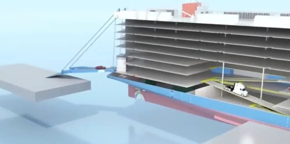 滚装船艉门装车示意图