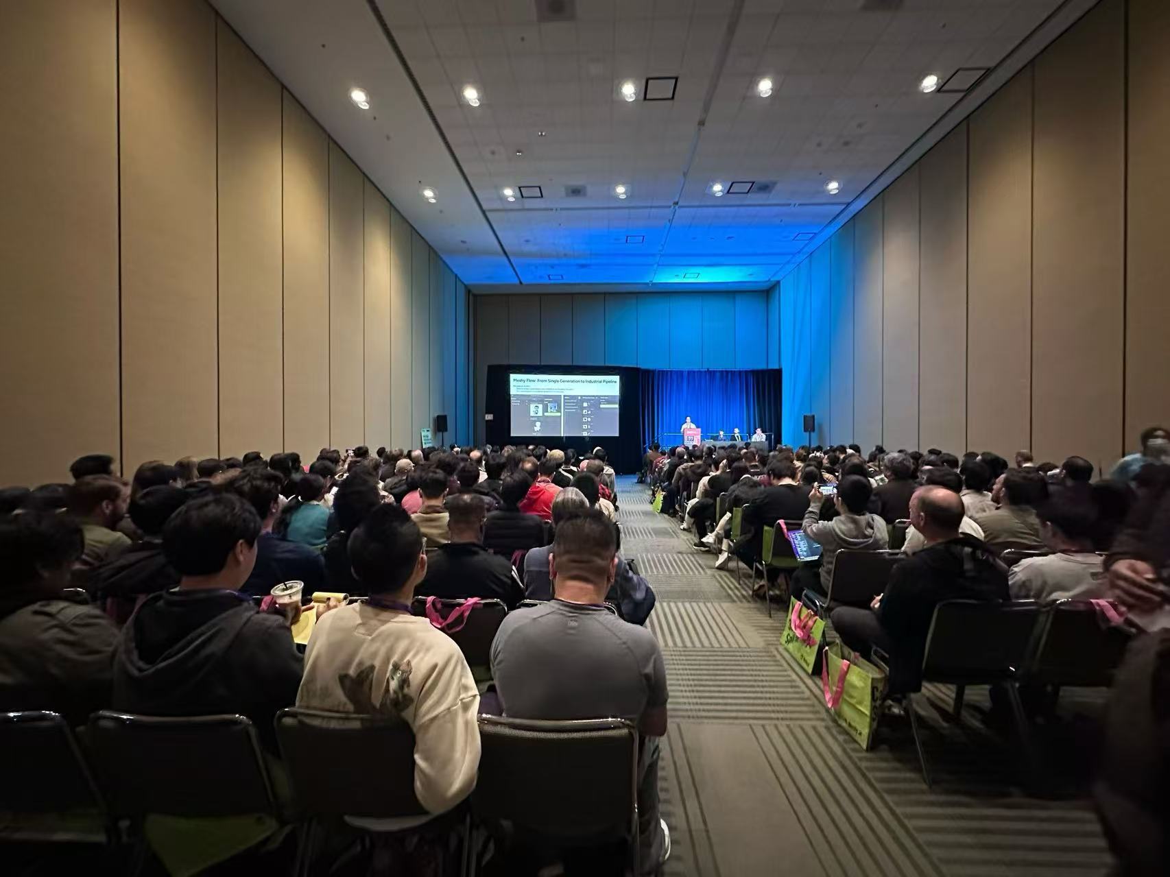 2026年 GDC 上,胡渊鸣被邀请在主论坛向社区分享 Meshy,现场280多人的会场座无虚席,不少观众在后排站着听。有行业人士评价,是在GDC大会上看到的排队最多的演讲。