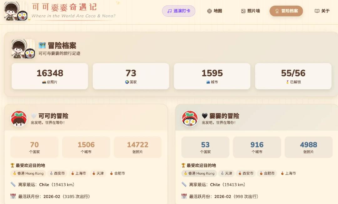 有粉丝还专门开发了一个粉丝共创互动平台(coconono.world),通过可可和嫑嫑全球旅行打卡、巡演地图联动和故事创作,去构建一个基于这两个角色的生米情感交流社区。