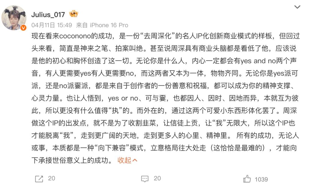 用粉丝的话说,这是一份“去周深化”的创新商业模式。当个人符号转化为群体符号,IP的生命力就发生了质变。