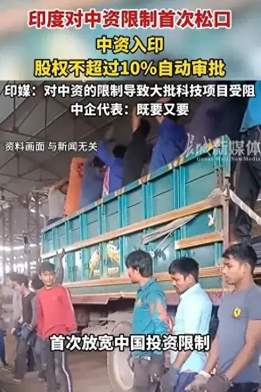 2026年3月,印度内阁修改了执行6年的投资规则,放宽对华投资限制。