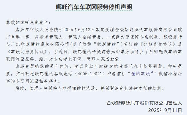 车主们愤怒,但无能为力。据第一财经报道,一位车主收到哪吒官方短信后愤怒地质问:“购车时承诺的三年内流量免费呢?”没有人回答他。因为承诺的那个人,已经找不见人了。