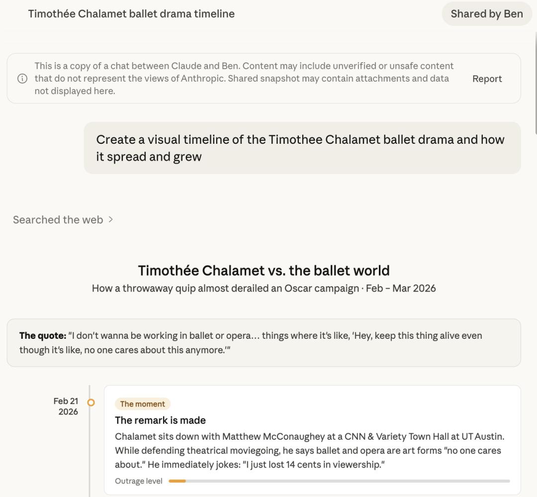 Inc.的记者做了个测试:让Claude生成Timothée Chalamet争议事件的交互式时间线。