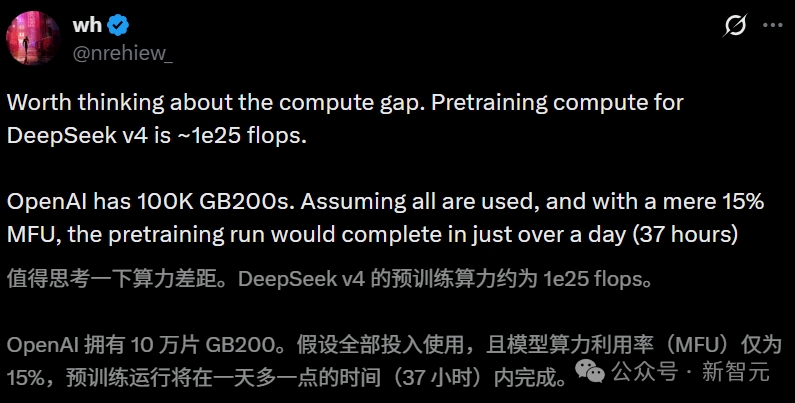 DeepSeek V4-Pro的预训练计算量大约1e25 FLOPs。