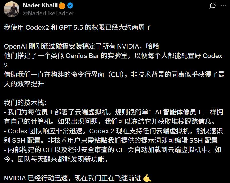 奥特曼在X上转发了这封信,「在英伟达全公司部署Codex,效果很好。想在你的公司试试吗?」