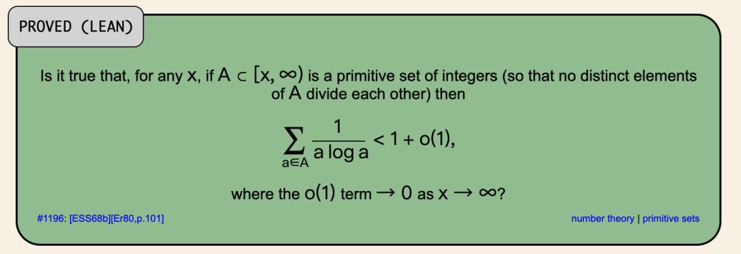 这次他们盯上的Erdős Problem #1196,关于「primitive sets」:一个集合里任意两个元素互不整除。