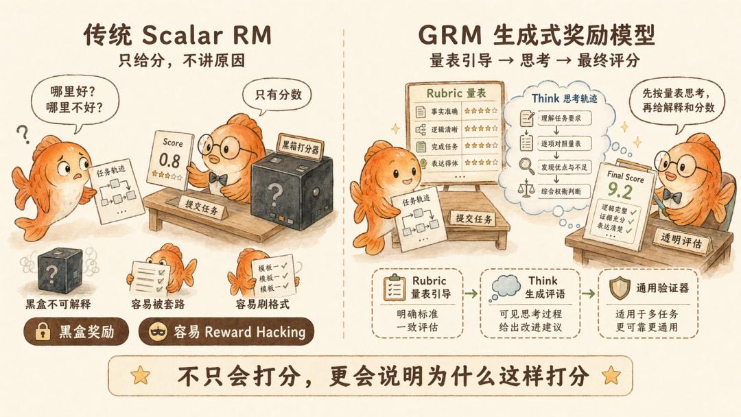 如果说 OPD 是解决如何合,那么 GRM(生成式奖励模型)就是解决怎么奖励的问题。