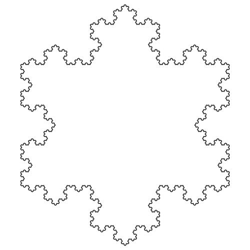 对生成的图形再次应用科赫曲线规则,不断继续。